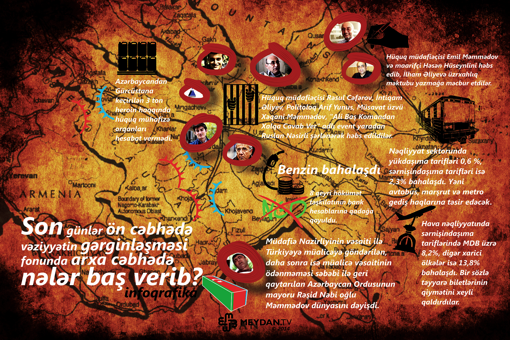 14. Reportyorların Azadlığı və Təhlükəsizliyi İnstitutu mühasirəyə alındı, rəhbəri Emin Hüseynovun bank hesablarına və ölkədən çıxışına da qadağa qoyuldu.