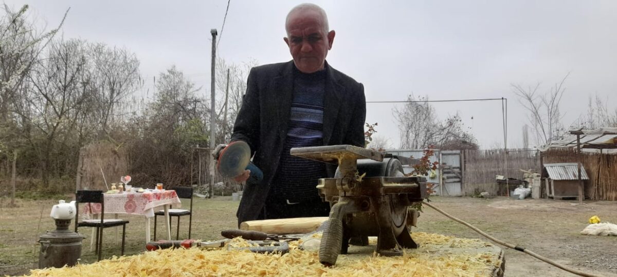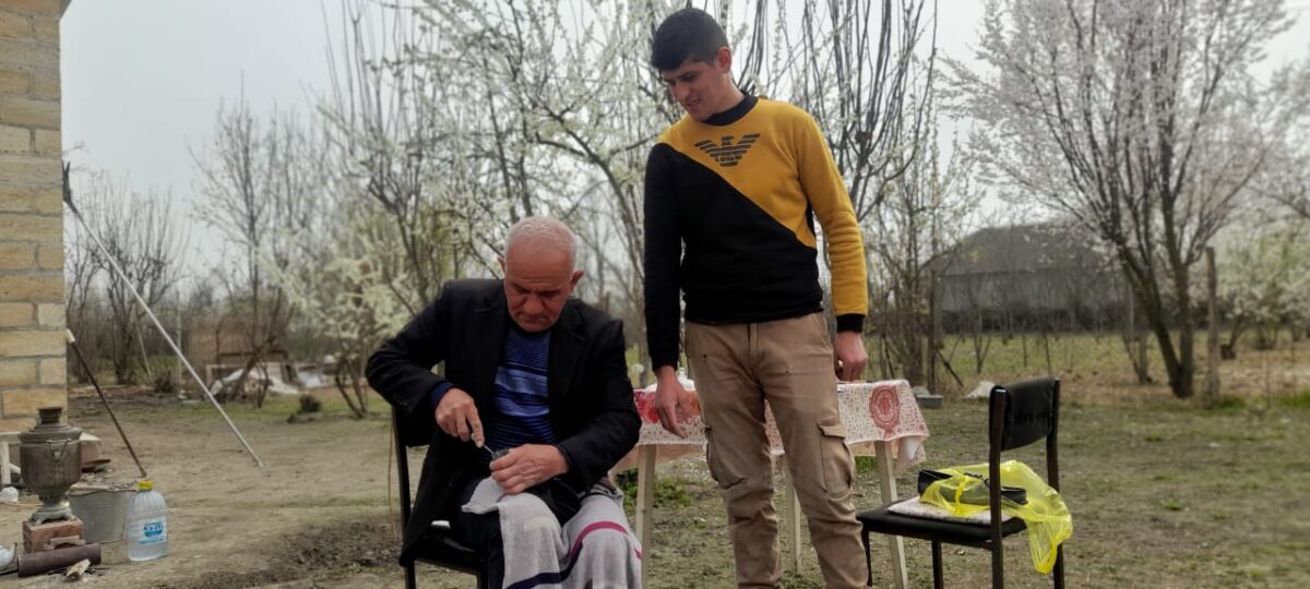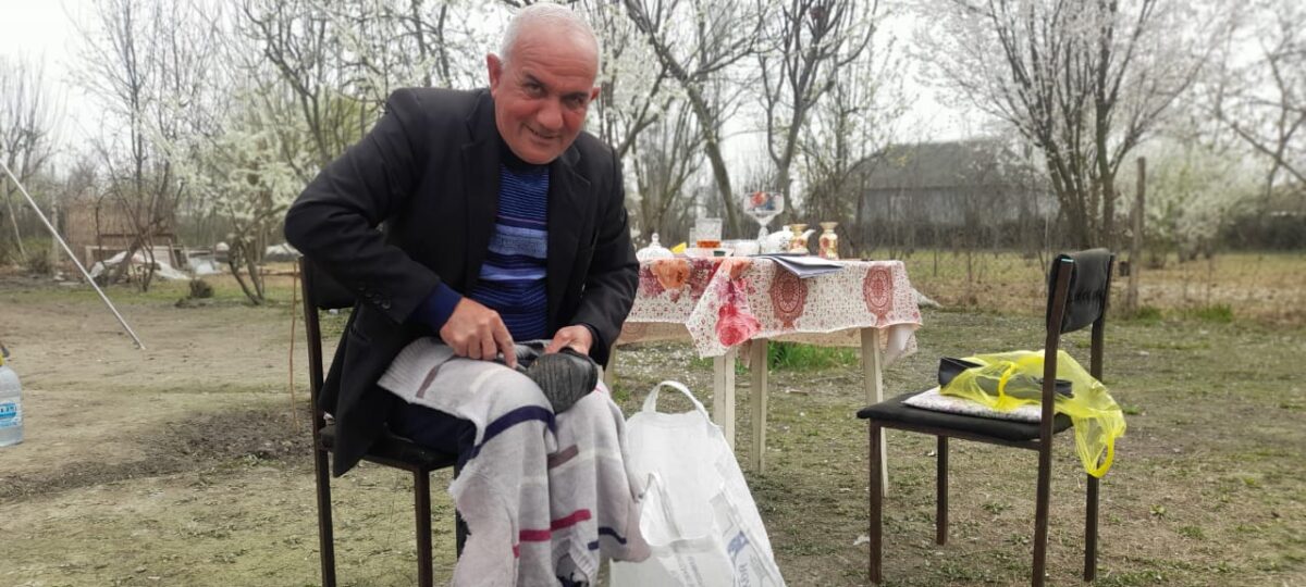 59 yaşlı usta hər gün səhər içi ləvazimatlarla dolu torbasını götürüb qonşu kəndə gedir.