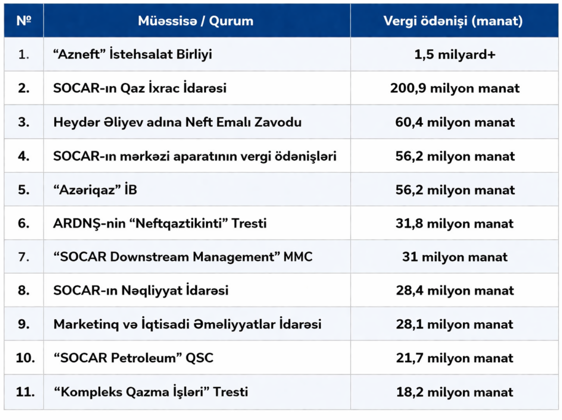 Təkcə “Azneft” İstehsalat Birliyi 1,5 milyard manatdan çox ödənişlə siyahının ilk pilləsində qərarlaşıb.