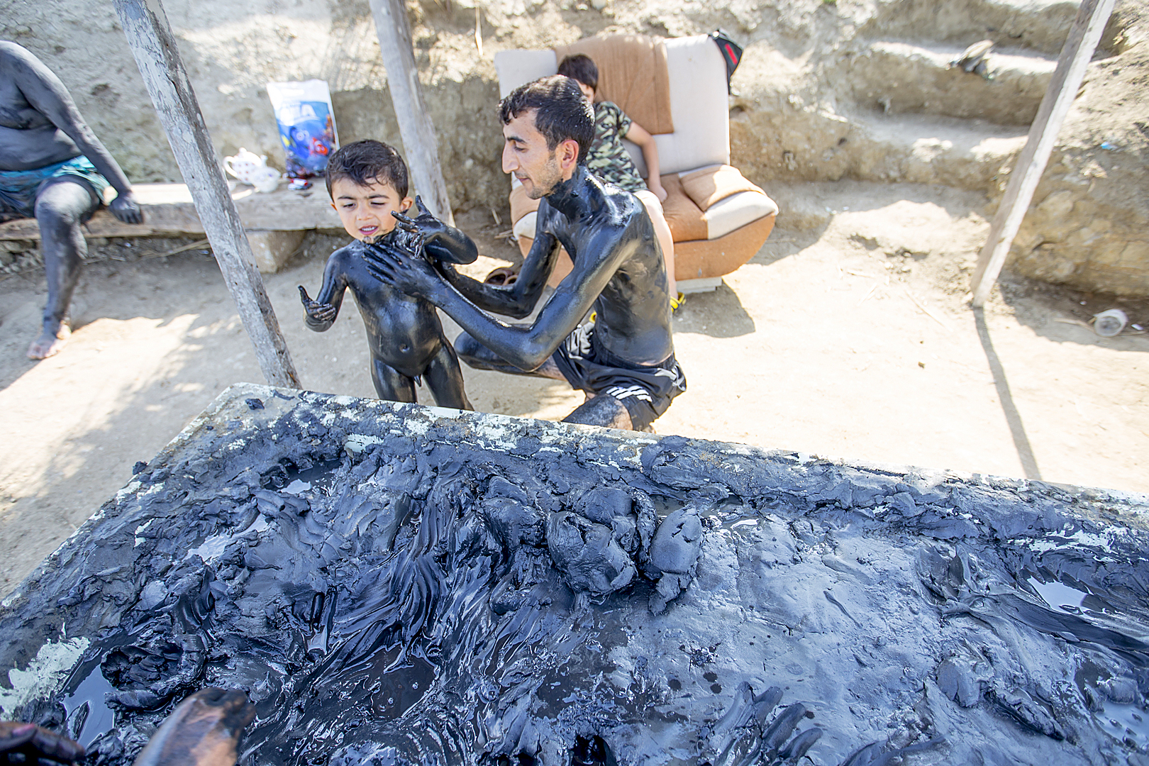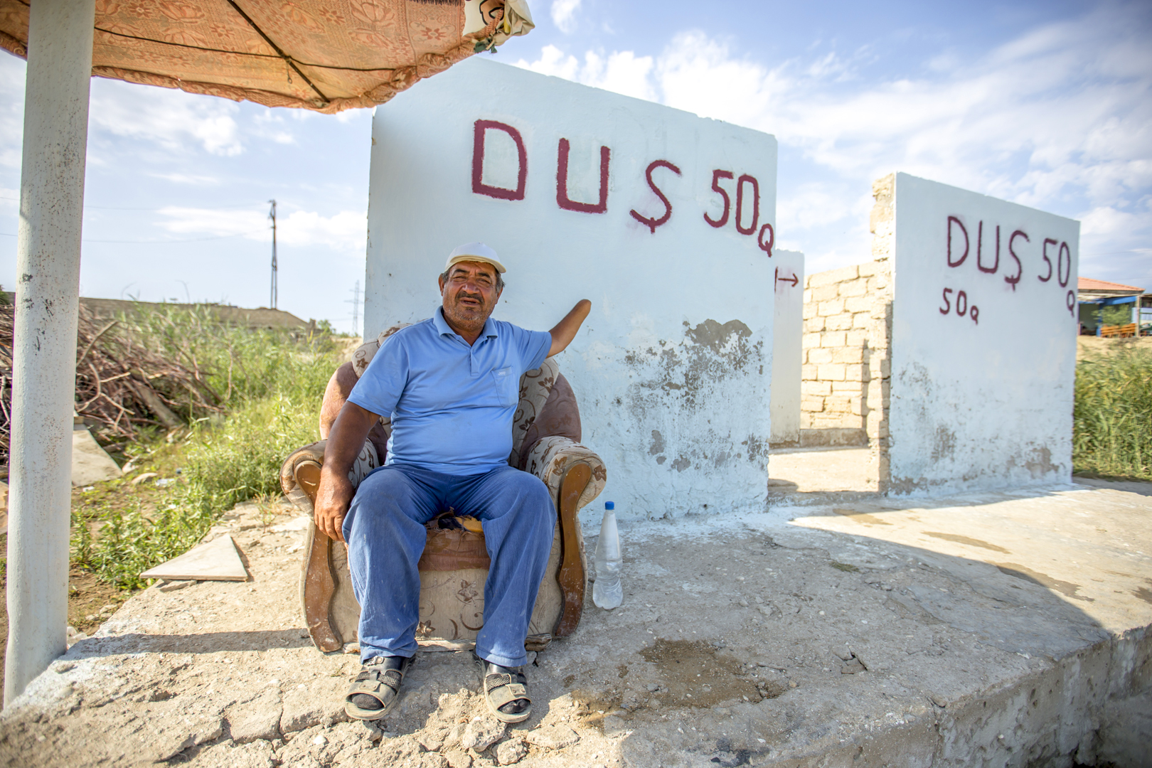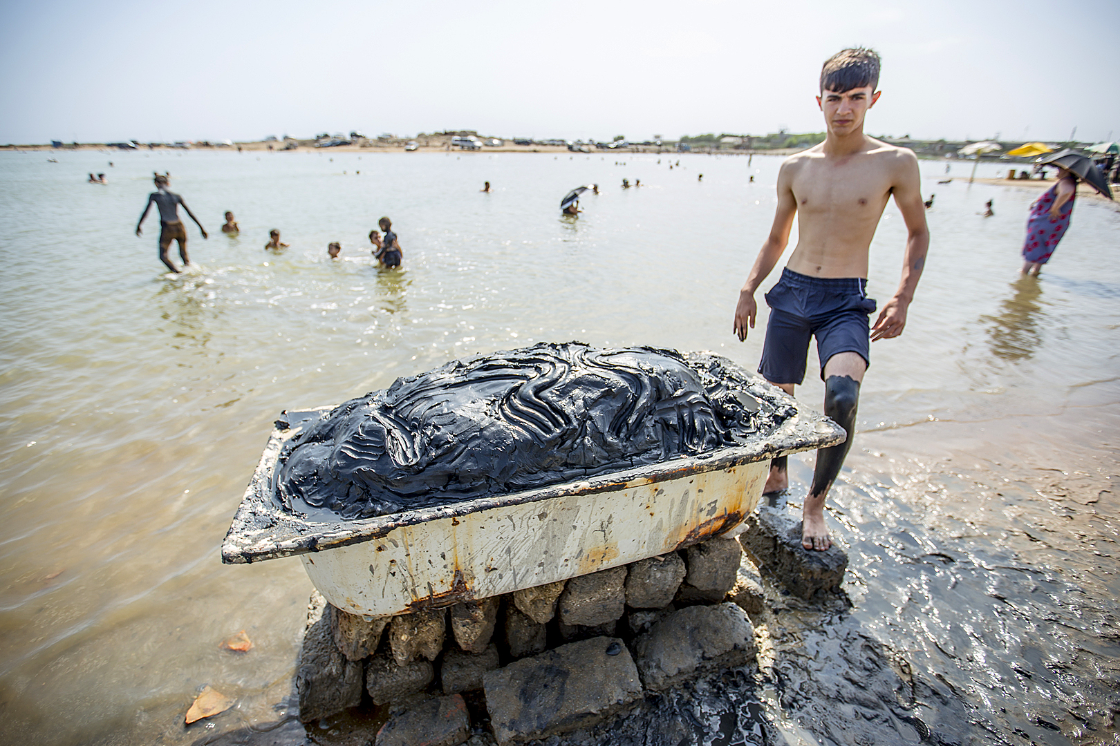 “Valideynlərim Zəngilan rayonundan məcburi köçkün düşüb. Duzlu gölün yaxınlığında yaşayırıq. 7 ildir Duzlu gölə gələnlərə xidmət edirəm. İki nəfərik, axşamdan gölün təxminən 2 metr dərinliyinə baş vurub oradan palçıq çıxarırıq və gölə gələn insanlara 50 qəpiyə satırıq” – 17 yaşlı Kənan Abdullayevin dedikləri.