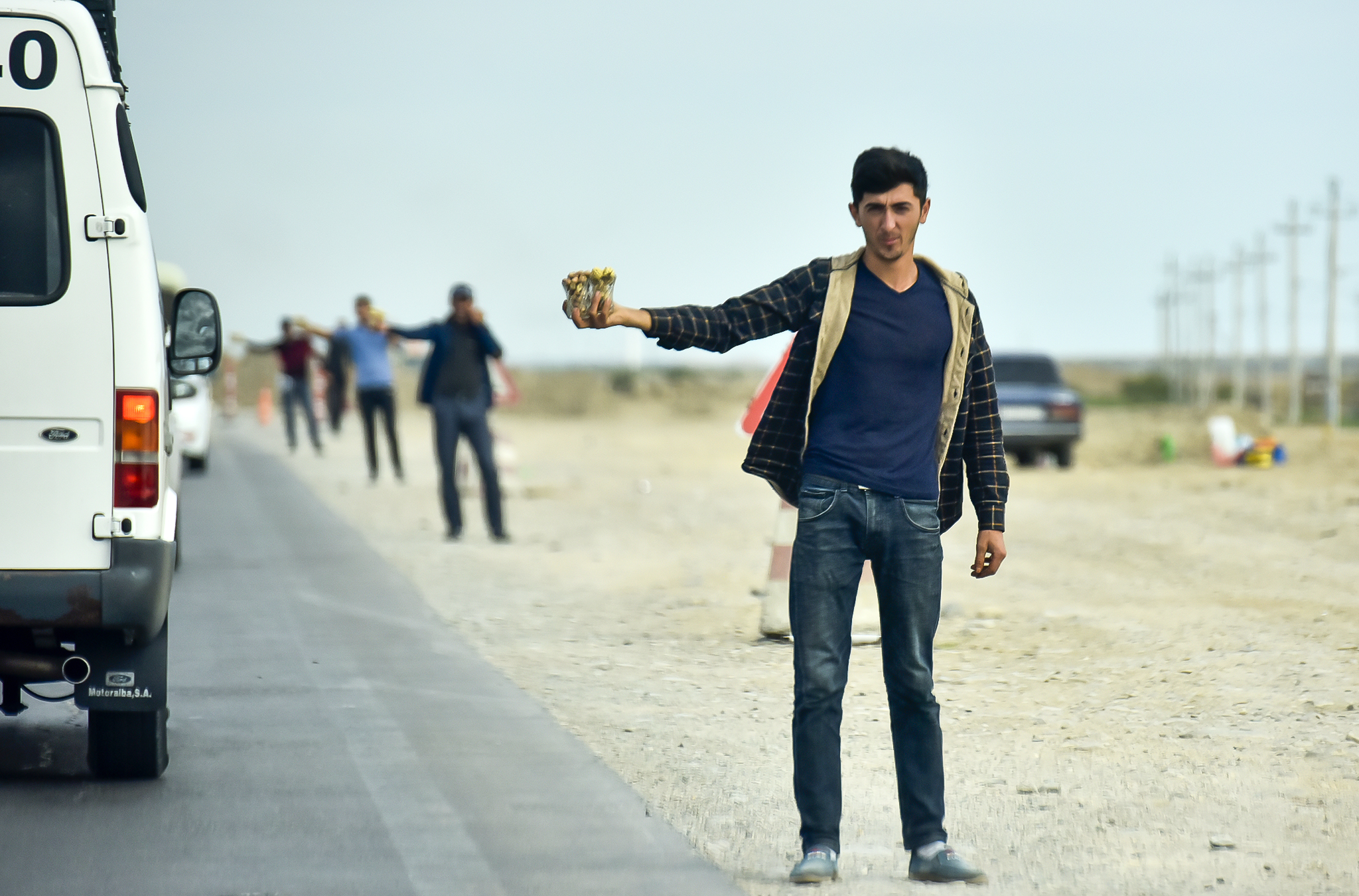 Şamaxıdan başlayaraq Qəbələyə qədər yol kənarında dayanıb təzə fındıq satanların da sayı artıb.