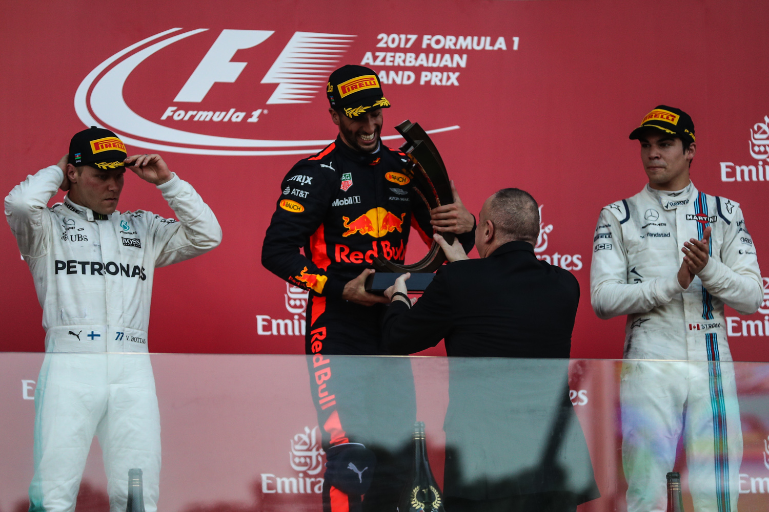 ”Red Bull Racing” komandasının pilotu Daniel Rikkiardo Formula-1 Azərbaycan Qran-Prisinin qalibi oldu.
