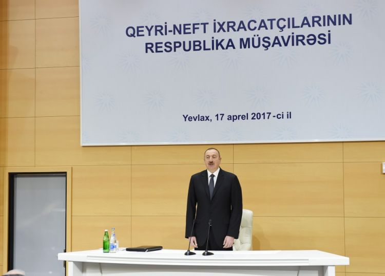 Aprelin 17-də Prezident İlham Əliyev qeyri-neft ixracatçılarının Yevlaxda keçirilən respublika müşavirəsində iştirak edib. Tədbirdə çıxış edən prezident deyib ki, Azərbaycan növbəti 3-4 ildə əsas istehlak malları ilə özünü tam şəkildə təmin etməlidir: