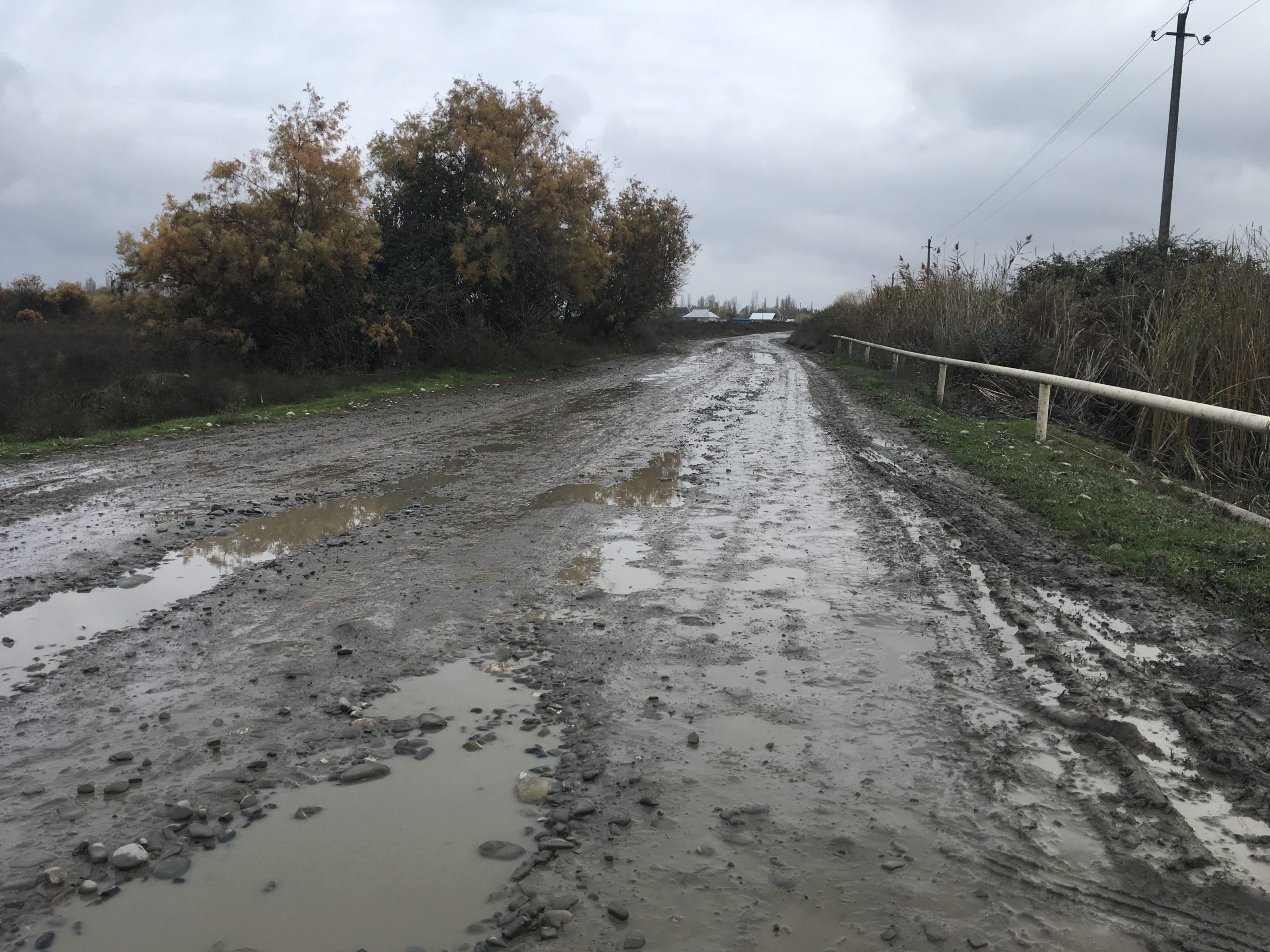 Kəndin yolları da pis vəziyyətdədir. Yolun ortasındakı kiçik çalalar su ilə doludur, kələ-kötür yollardan isə maşınlar çətinliklə gedib-gəlir: