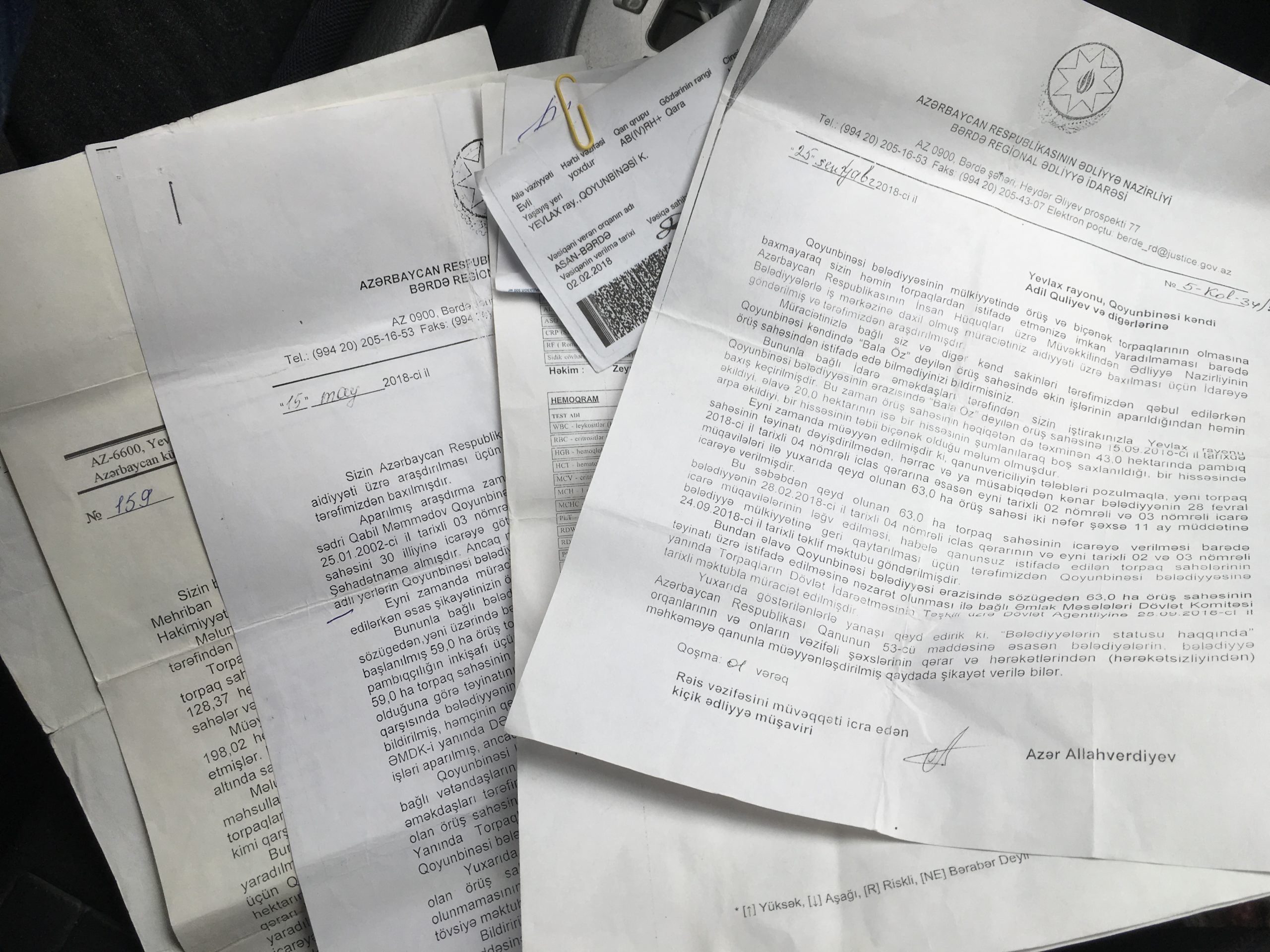Sakinlər indiyədək Ədliyyə Nazirliyinə, Bərdə Regional Ədliyyə İdarəsinə, Prezident Administrasiyasına, Yevlax Rayon İcra Hakimiyyətinə, Əmlak Məsələləri Üzrə Dövlət Komitəsinə məktublar göndəriblər. Heç birindən cavab ala bilməyiblər.