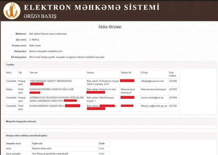 Sabiq deputat Nazim Bəydəmirli “Yeni Müsavat” saytını, Azərbaycan Dövlət Televiziyasını və deputat Elman Nəsirova qarşı məhkəmə iddiası qaldırıb.
