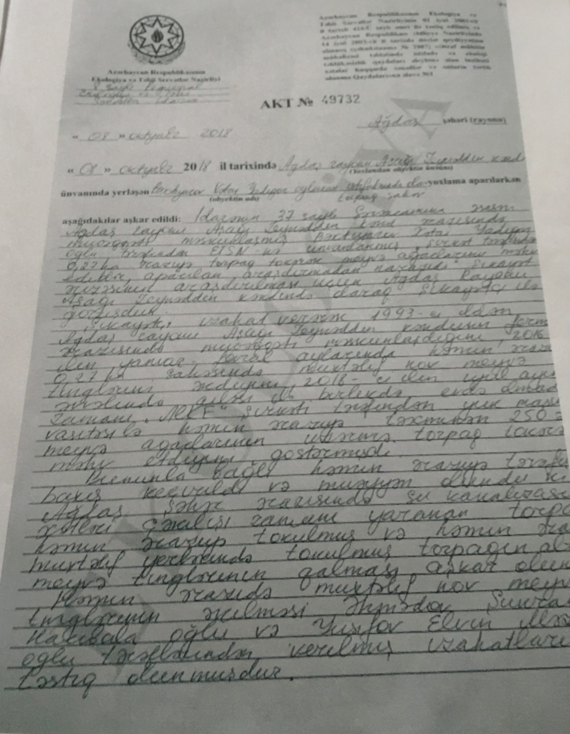“Həyat yoldaşım döyüldü, polisə müraciət etdik, işi bağladılar. Fermamdan mal-heyvanım oğurlandı, yenə müraciət etdik, min bir fırıldaqla bu işin də üstünü örtdülər. Sonda da oğullarıma şər atıb, onlara qarşı cinayət işi açdılar. Birinci şər elektrik enerjisi istifadəsinə görə idi. Belə ki, məcburi köçkünlərin kommunal haqlarını dövlət verir axı. Oğlumun işığını kəsiblər ki, borcunu özün ödə. Oğlumun da uşağı xəstə imiş. Səhəri gözləməyib, işığı birləşdirib. Buna görə ona cinayət işi qaldırıblar. Rəsmiləşdirəndə hətta qeyd ediblər ki, guya oğlum işıq idarəsinin işçilərinin üstünə balta ilə hücum edib. Baxın belə haqsızlıqla üzləşmişik”.