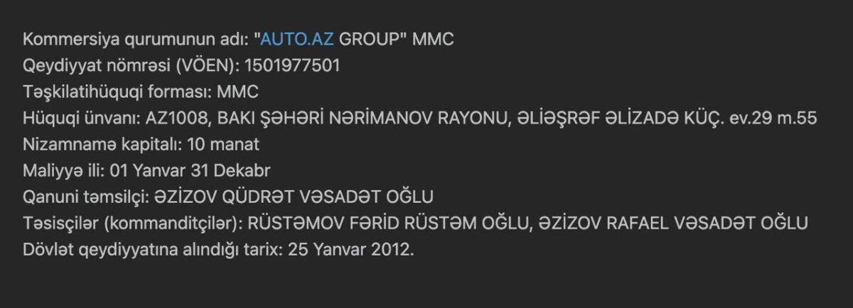 Qüdrət Əzizov “AUTO.AZ GROUP” MMC şirkətinin sahibi olmadığını da deyib: