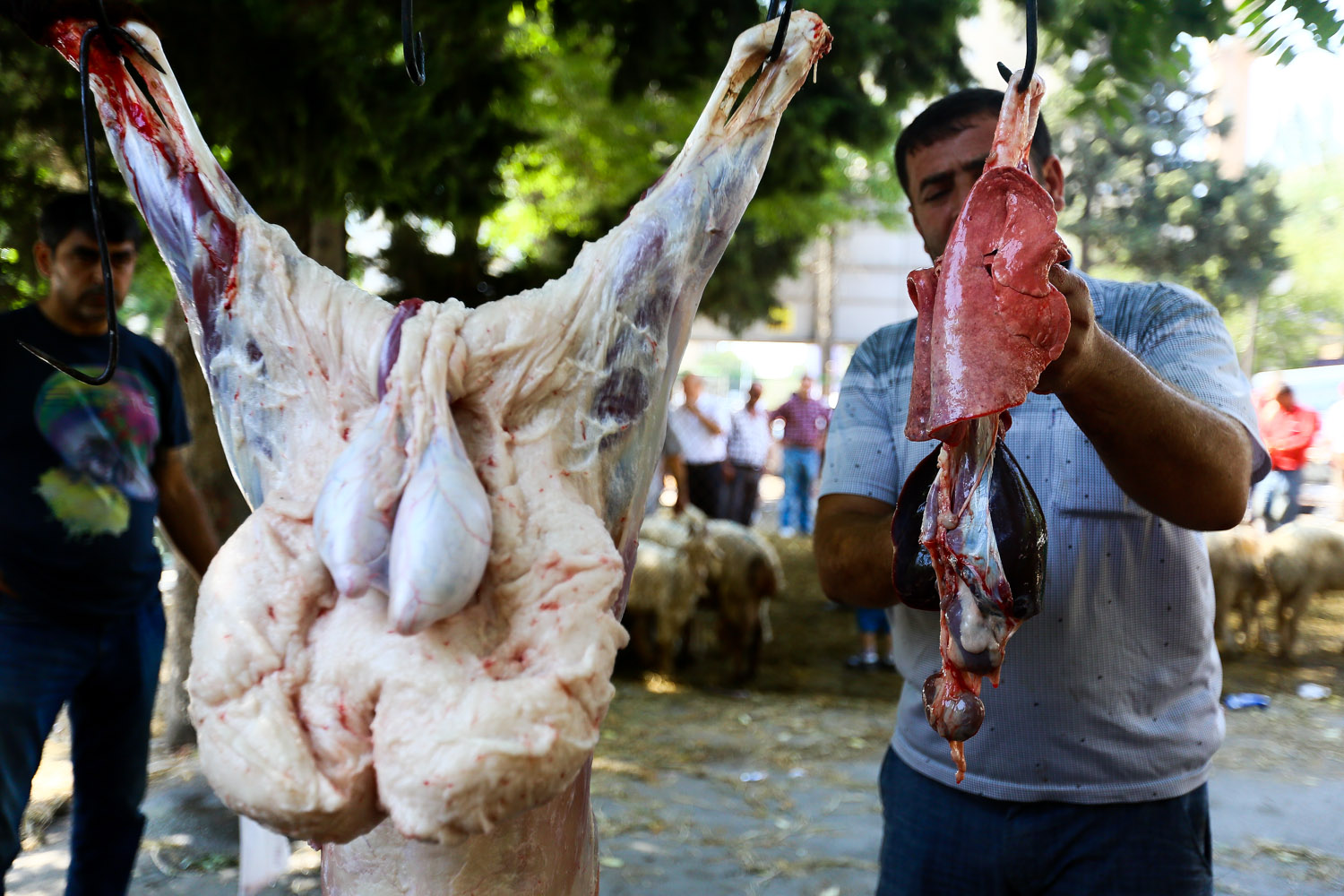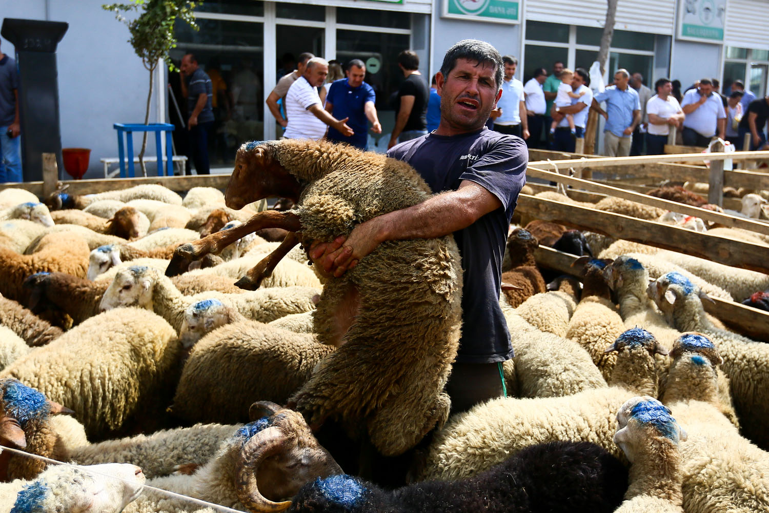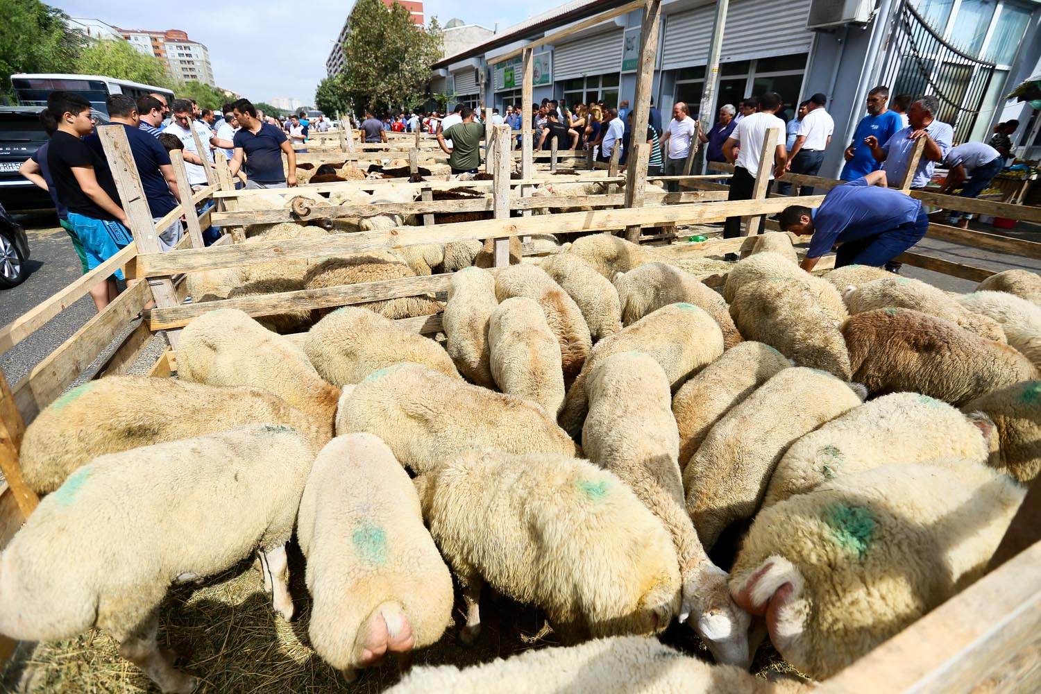 Bayram münasibətilə rayonlarda, eləcə də Bakının müxtəlif nöqtələrində qurbanlıq qoyunların satışı başlayıb. Ətlik üçün satılan digər qoyunlardan fərqlənməsi üçün bu heyvanların üzəri nişanlanıb. Hətta müxtəlif yerlərdə qırmızı lentlə bəzədilmiş qoyunlara da rast gəlinir. Bu qoyunları adətən nişanlı qızların evlərinə də bayram payı kimi aparırlar.