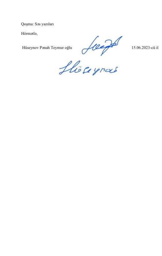 Pənah Hüseynov Meydan TV-yə bildirib ki, şikayət məktubunu da, orada göstərdiklərini təsdiqləyən səs yazılarını xeyli vaxtdır ki, Baş Prokuror Kamran Əliyev və onun birinci müavininə göndərib. Amma bu qurumdan heç bir reaksiya yoxdur.