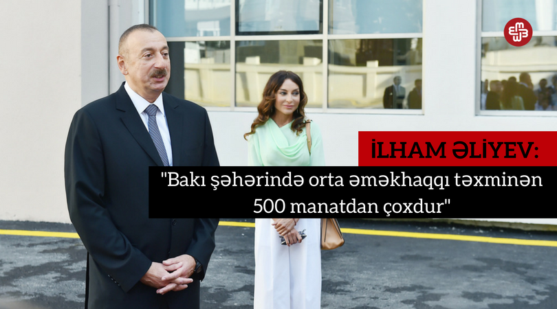Prezident İlham Əliyev sentyabrın 15-də 20 nömrəli məktəb-liseyin yeni binasının açılışında müəllimlərin maaşlarından danışıb. O, ölkədə orta əmək haqqının 500 manatdan çox olduğunu söyləyib. Prezident bunu yaxşı göstərici sayıb.