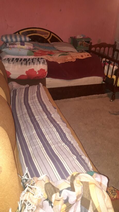 “Böyük qızlarım 5-ci və 3-cü siniflərdə oxuyur. Məktəbə kiminsə köhnəsi, nimdaşı ilə gedirlər. Günlərlə ayaqları su içində olur. Üçüncü oğul övladımın 4 yaşı var, balaca qızım isə yaşyarımlıqdır. Nəm otaqda yaşamaqdan balaca övladım ağciyər xəstəsidir. Neçə gündür ki, dərman və qidaya pul tapmırıq. Həkim deyir ki, o otaqda yaşamaq olmaz. Ev palçıqdır, hər gün nəmişlik, rütubət olur deyə divarlar tökülür. Eyni evdə qaynanam və qaynım ailəsi ilə birgə yaşayır. Biz 6 nəfər bir otağa sığınmışıq, dolanışığımız isə ayrıdır”.