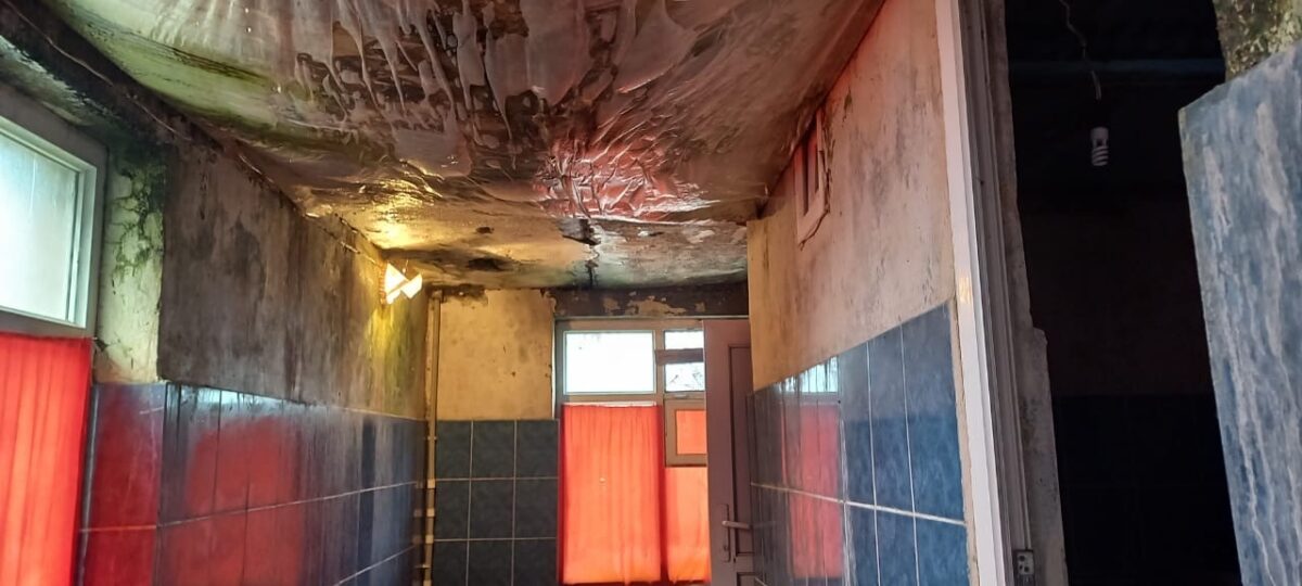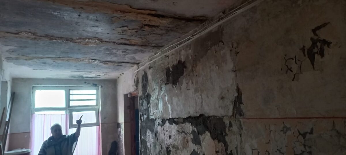 “Yaşadığımız yataqxananın kanalizasiya sistemi sıradan çıxıb, daim su axdığından tavan və döşəmə çökmək üzrədir. Yuxarı mərtəbədən tökülən kanalizasiya axıntısının qarşısını almaq üçün tavana sellofan torbalar yapışdırırıq”.