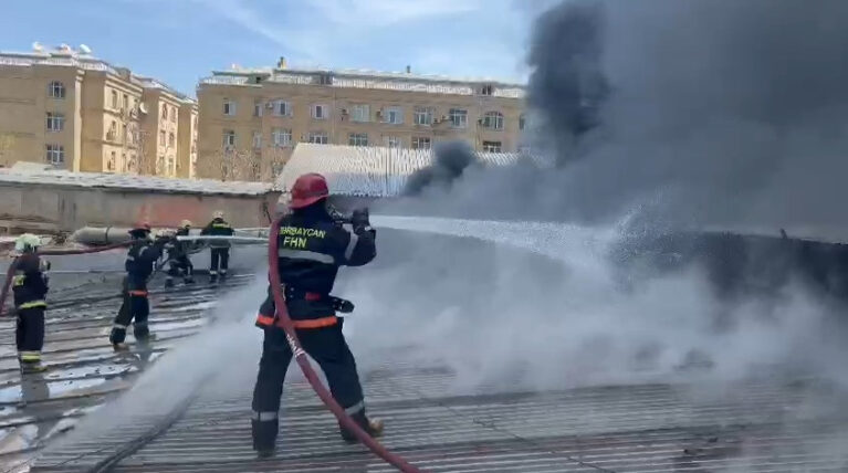 Bakıda anbar yanıb