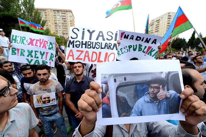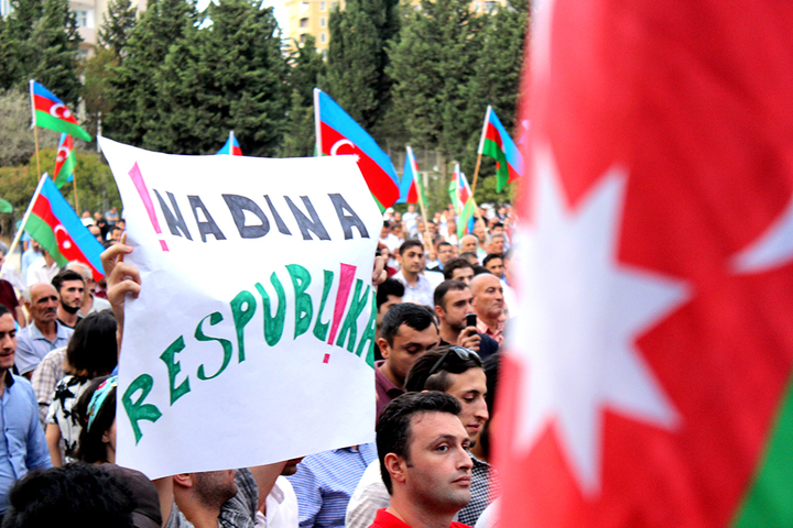 Azerbaijani Popular Front Party held a demonstration on September 11 in protest of the upcoming September 26 constitutional referendum.