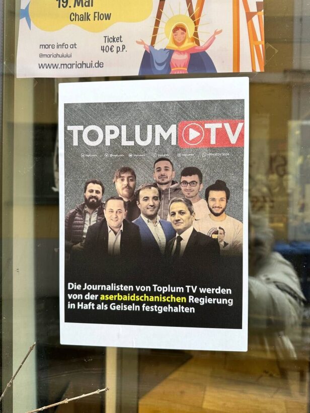 On 29 January, activists in Passau organized a public demonstration highlighting the plight of journalists imprisoned in Azerbaijan. Portraits of journalists behind bars were displayed along the city’s central streets, alongside placards reading, “Journalists are held hostage by the Azerbaijani government.”