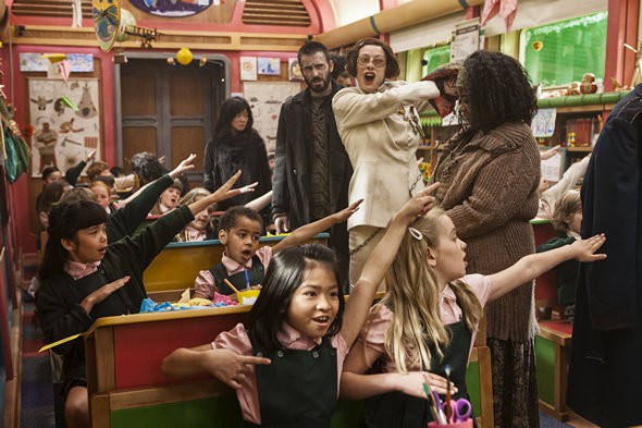 Similar to the Hunger Games, we see that the elite have medical care, schooling, fancy hair and clothes, seem to be engaging in hedonistic behavior (although we only see them on New Year’s Day, so this may have changed things), and the difference between the squalor at the back of the train is painful to see.