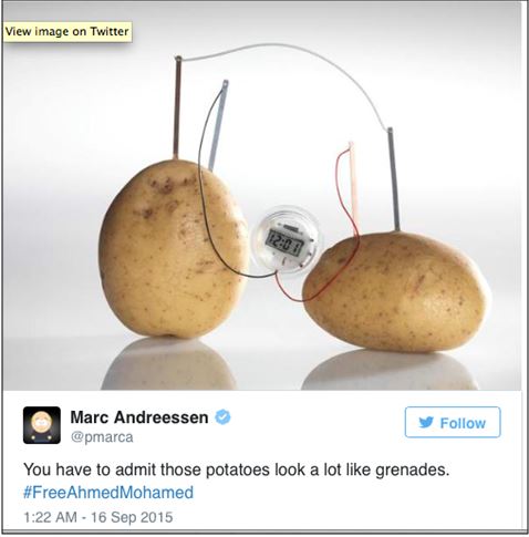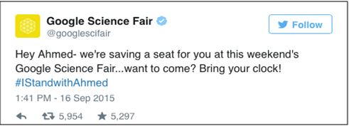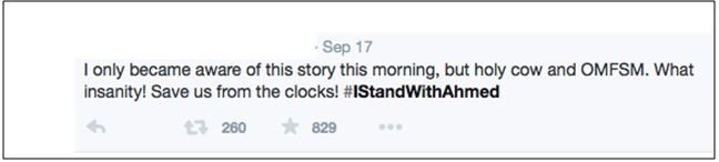 What is particularly interesting, however, is how the traditional and social media outlets exploded with criticism. Nearly every person with access to an electronic device and the internet weighed in. Twitter was (as usual) particularly entertaining. People made memes, created the hashtag #IStandWithAhmed, criticized the police, and lambasted the rest of the authorities.
