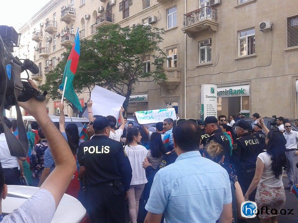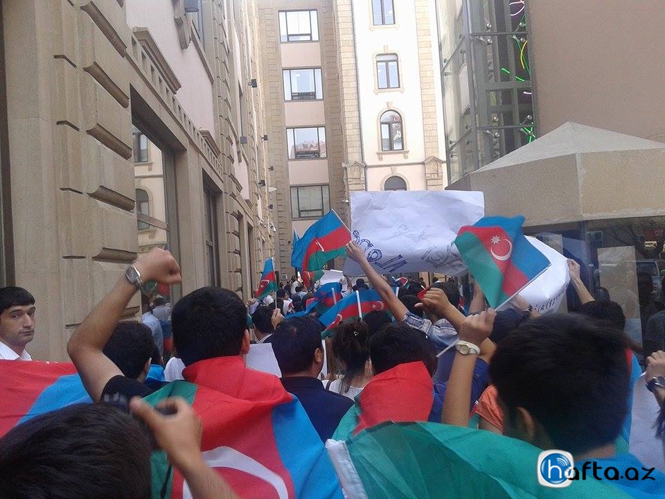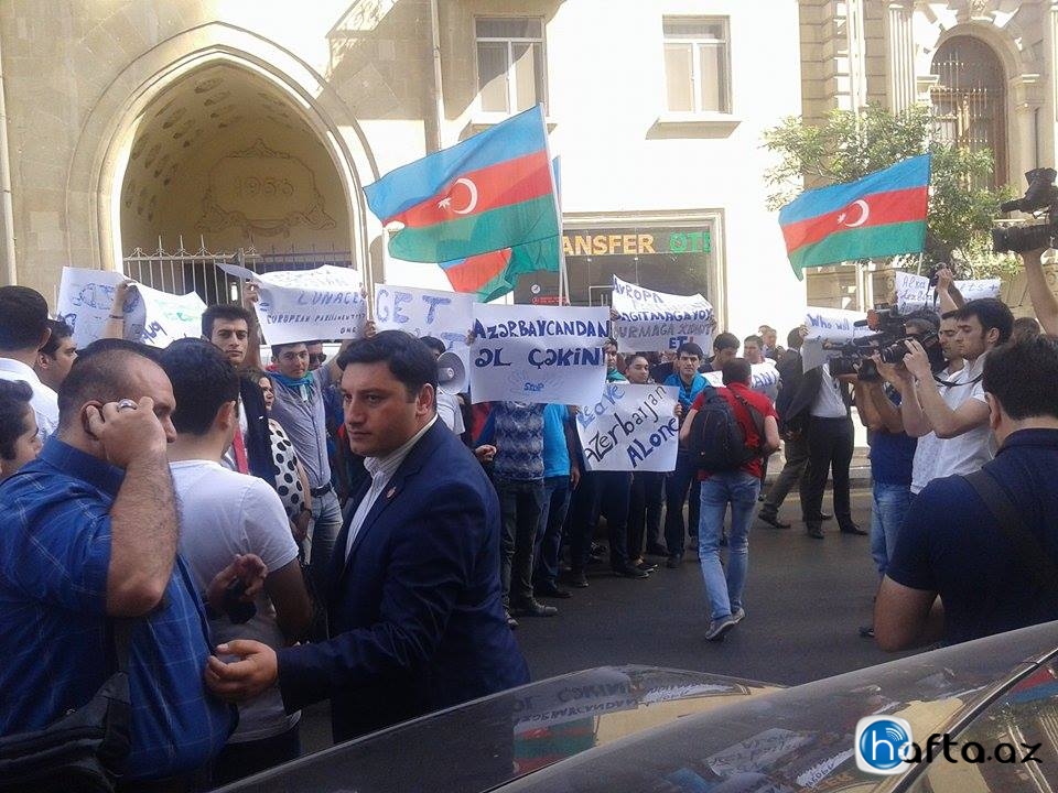 Несколько десятков членов проправительственных молодежных организаций пикетировали утром 11 июня офисный комплекс Landmark на улице Хагани в Баку, где размещены миссия Евросоюза, ОБСЕ, посольство Великобритании и часть посольства США.