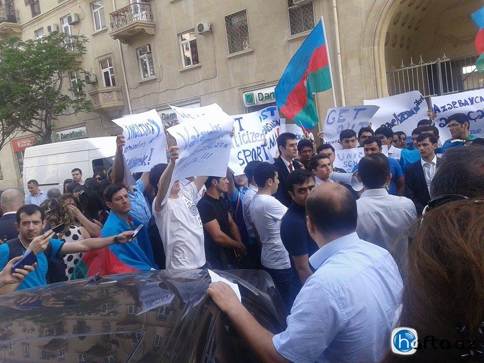 Они скандировали лозунги, осуждающие «двойные стандарты Запада», требовали прекратить «необоснованную критику в адрес Азербайджана»