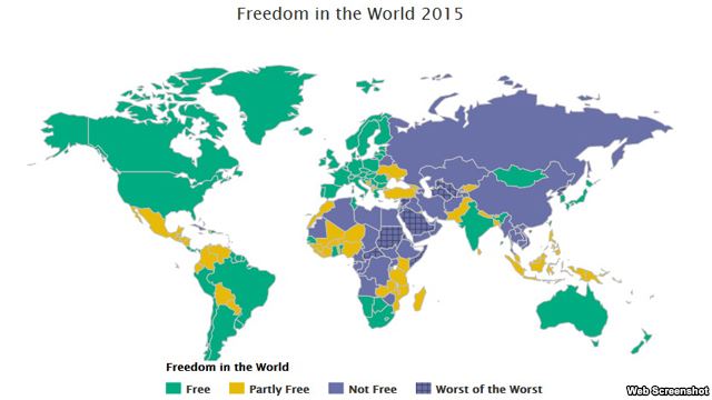 Правозащитная организация Freedom House опубликовала свой ежегодный доклад «Страны переходного периода-2015», в котором анализируется ситуация в 29 государствах гигантского региона – от Центральной Европы до Центральной Азии.