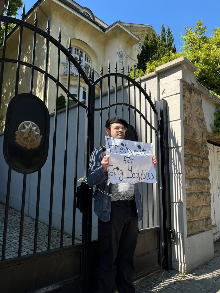 Гражданский активист приковал себя цепями к воротам посольства Азербайджана в Германии